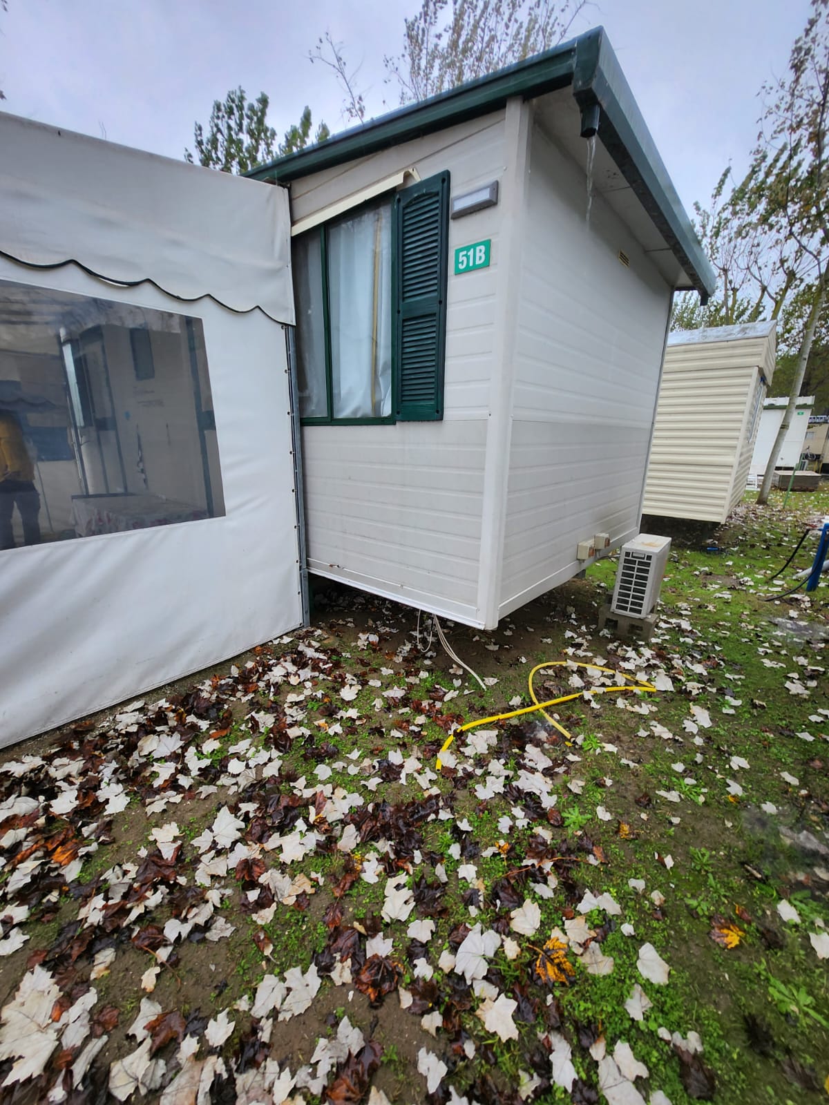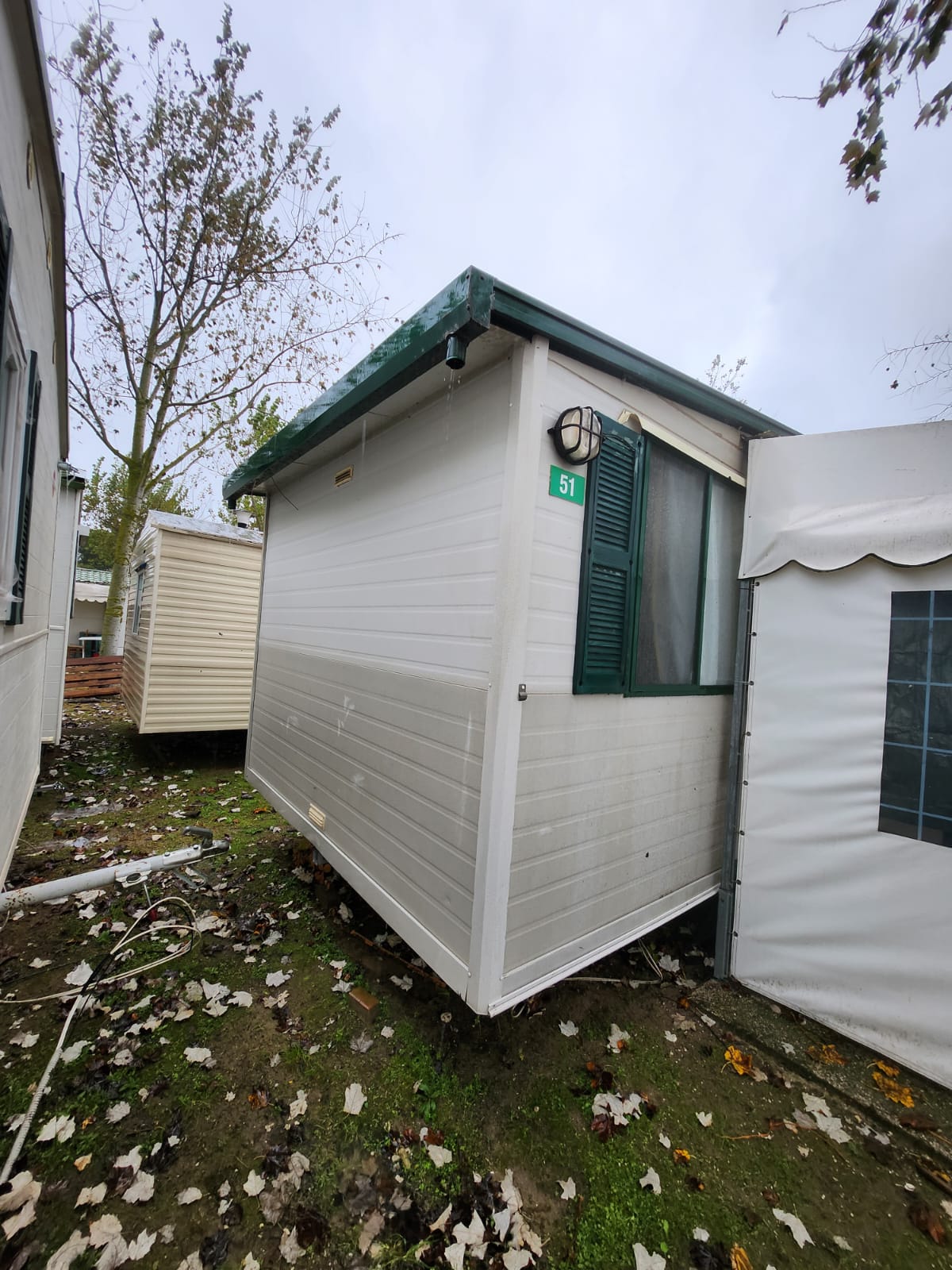 Pannellatura perimetrale XPS. Tetto con lamiere grecate (ottimo carico neve). Carrello su ruote in acciaio zincato con cosciali, barre perimetrali, omeghe (barre trasversali), assale con ruote. Infissi in alluminio con vetro 18mm
