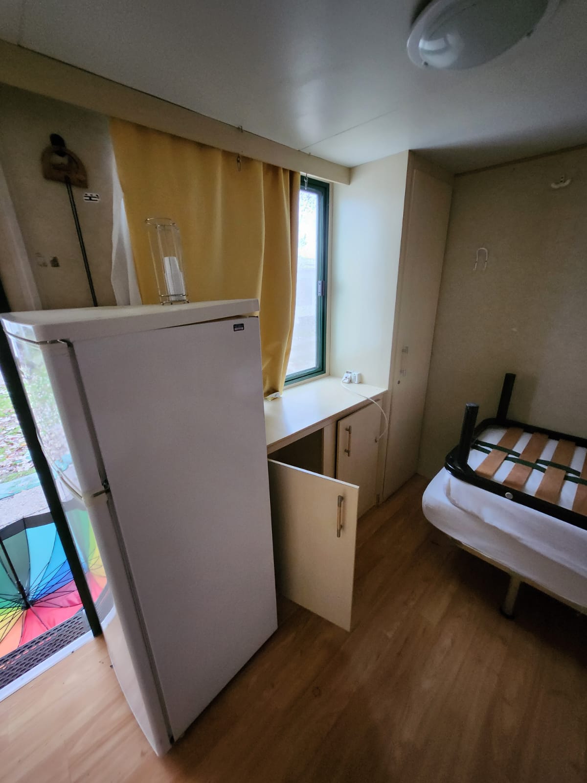 Casa mobile hotel: doppio ingresso, per ciascun ingresso troviamo camera + bagno completo con wc lavandino e doccia