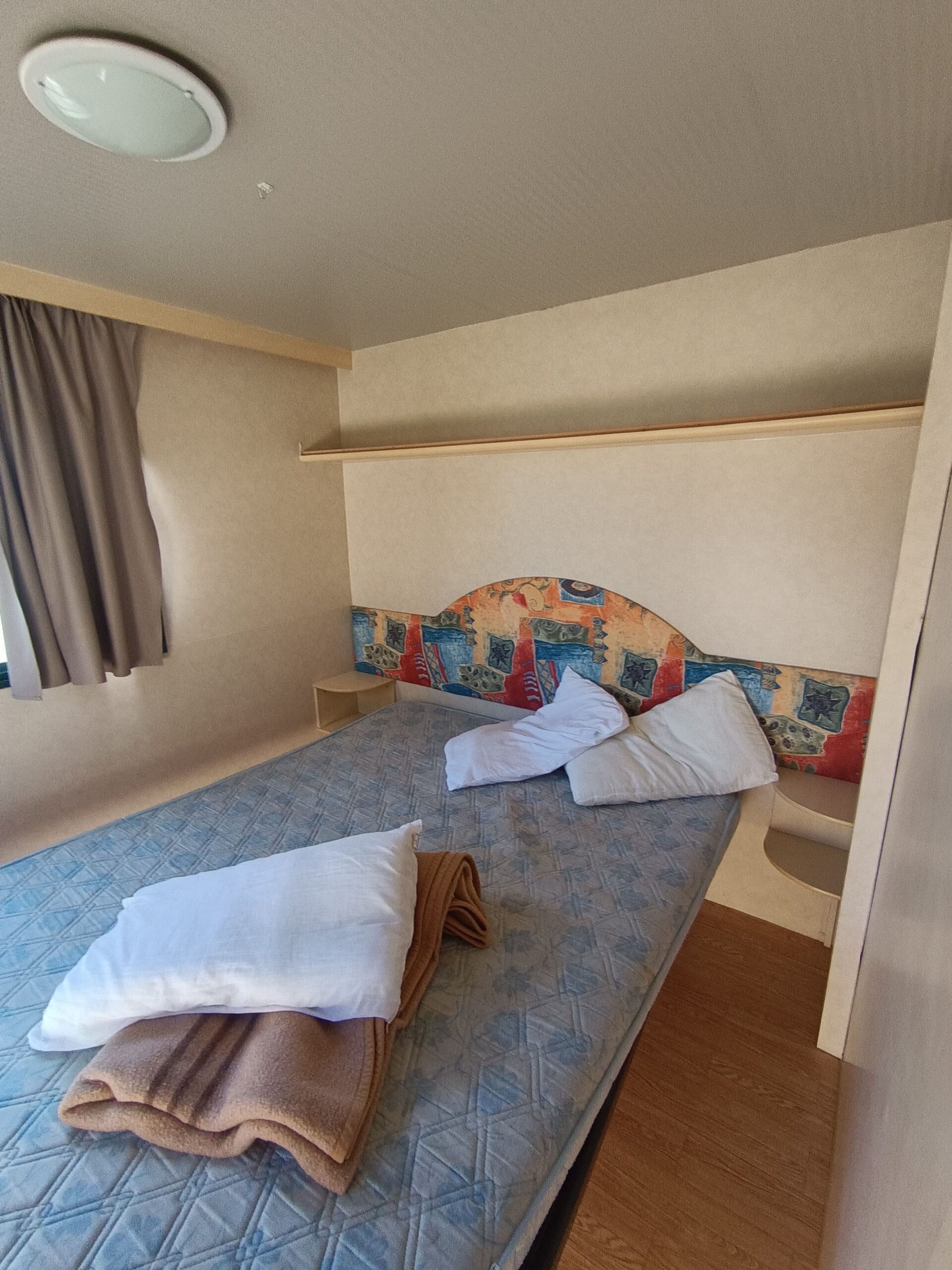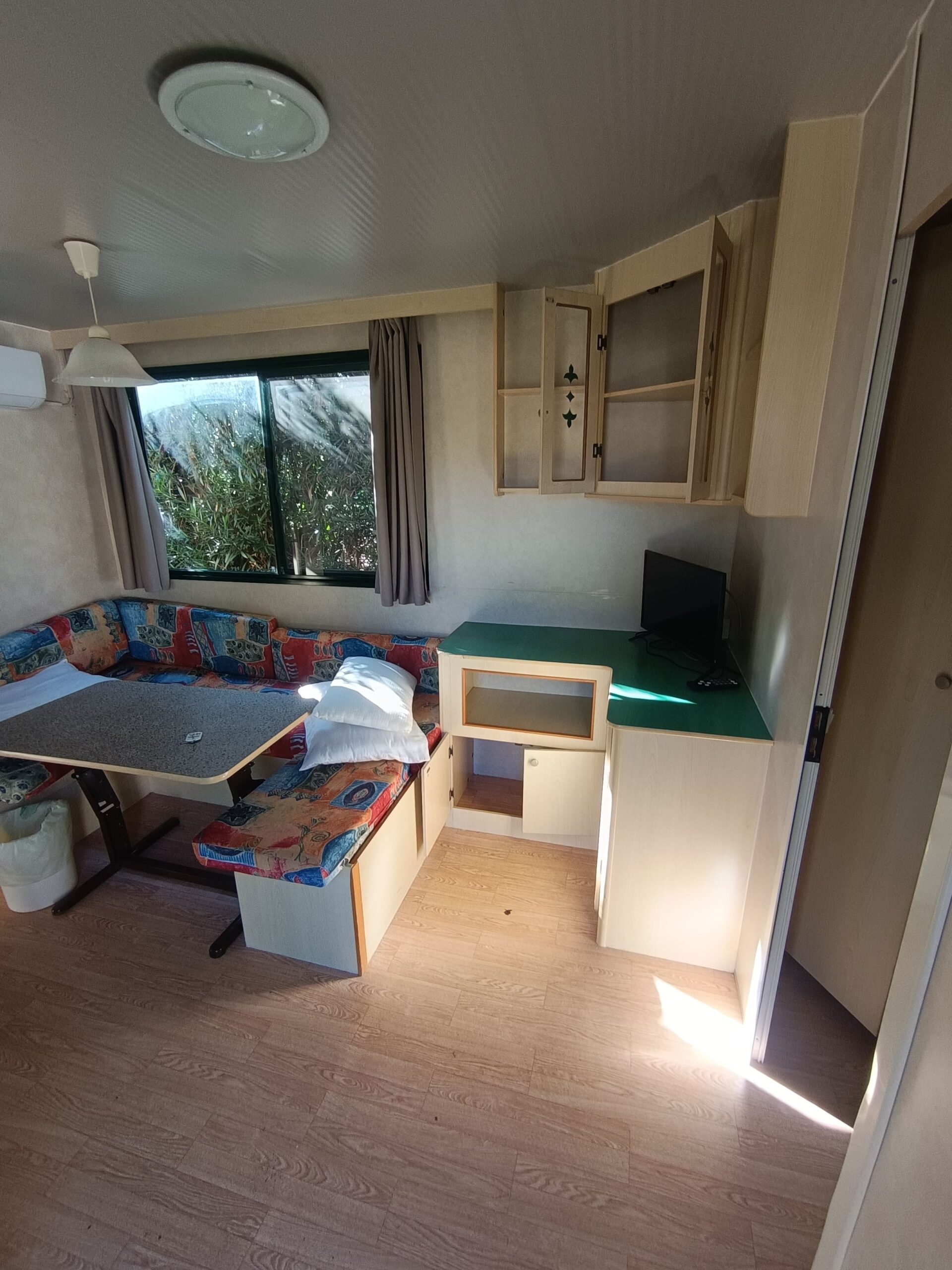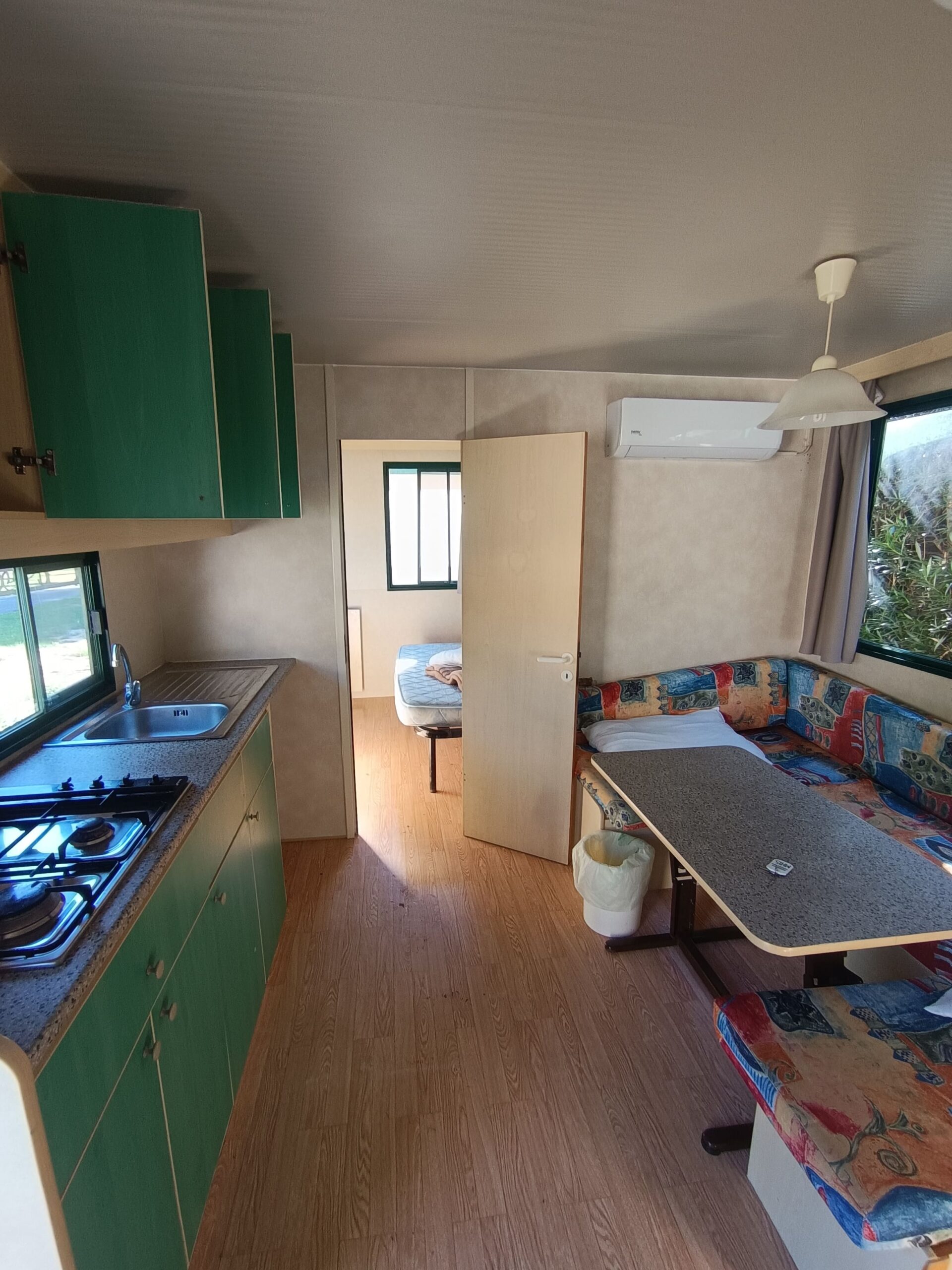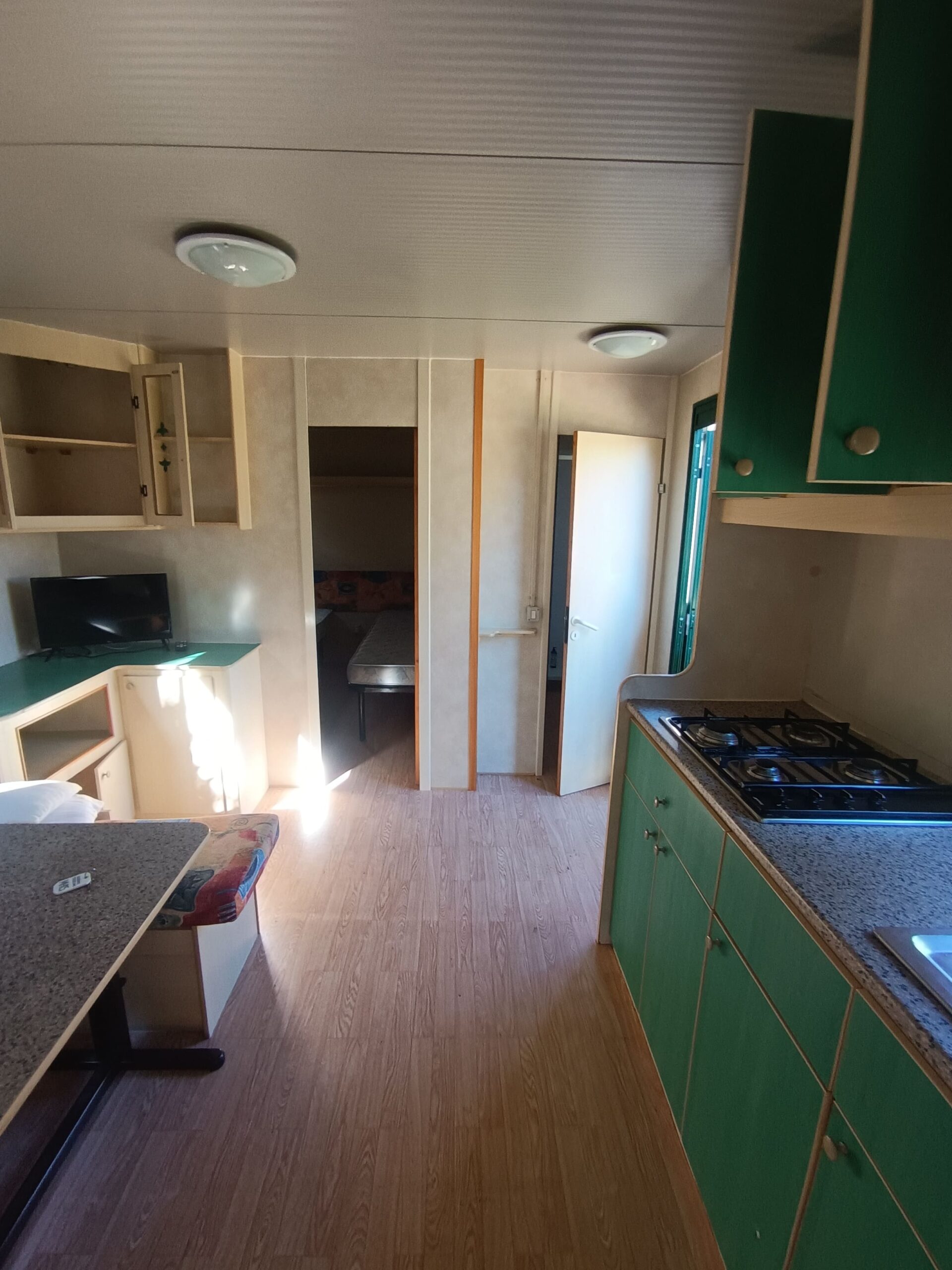 Soggiorno con cucina e divano; bagno completo di wc lavandino e doccia; cameretta; camera matrimoniale.